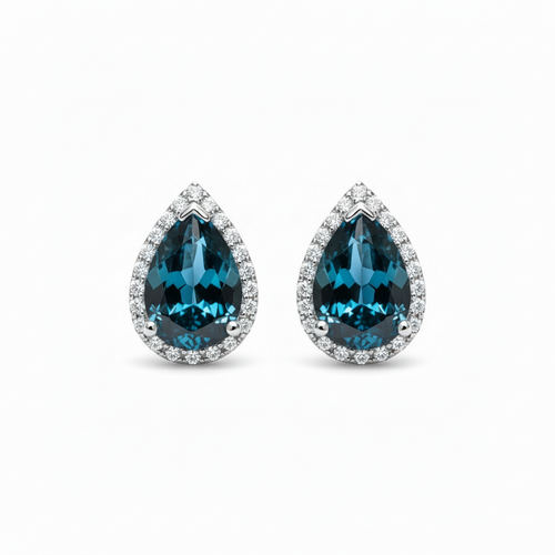 Deep Ocean Brilliance: Natural London Blue Topaz Halo Stud Earrings in 925 Silver