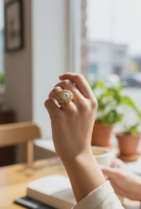 • Band Detail: Unique, highly-detailed Textured/Filigree Style outer band that adds a rich, vintage, and opulent aesthetic.